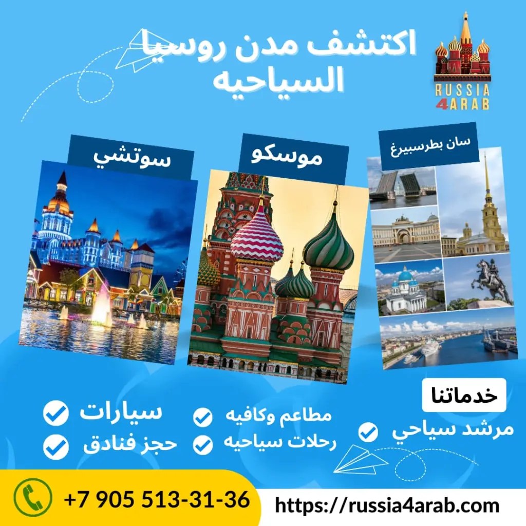 فى روسيا فورآراب نقدم خدمات متميزة وفريدة من نوعها للسياح العرب الراغبين في القدوم إلى روسيا بالتعاون مع كبرى الشركات السياحية العربية والروسية التى تقدم أفضل الخدمات بأحسن أسعار