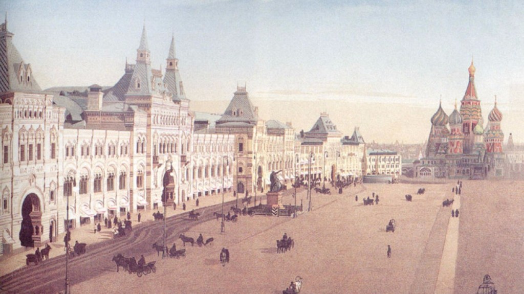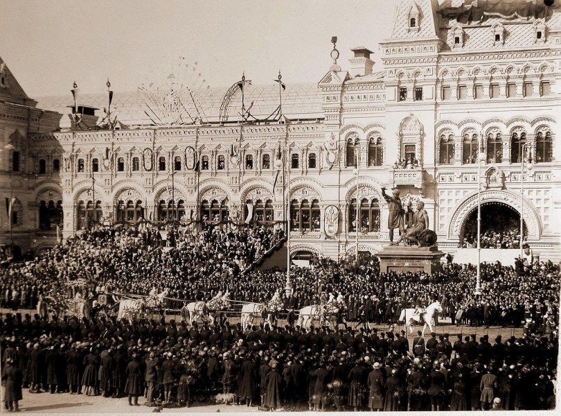 في 2 ديسمبر 1893، تم الاحتفال بالافتتاح بحضور السلطات العليا في موسكو ، بما في ذلك الحاكم العام لموسكو ، الأمير سيرجي ألكساندروفيتش، وزوجته إليزافيتا فيدوروفنا، وكان ملكاً لشركة قطاع خاص ساهم فيها كبار التجار ،322 متجراً تم توزيعهم على ثلاثة طوابق: الطابق الأول استخدم من أجل تجارة الجملة ،وفي الطابق العلوي كانت أكثر الشركات شهرة فى ذلك الوقت، و أصبح جوم النموذج الحديث الأوروبي من مراكز التسوق في موسكو ليس فقط للتسوق ولكن أيضا لتنظيم المعارض والحفلات الموسيقية،وتحول الدور الثالث إلى مكانًا مفضلاً لدى سكان موسكو للمشي ومشاهدة البضائع و أتت العائلات بأكملها للتسوق و للتنزه و بالإضافة إلى محلات التسوق ، كان يمكن للزائرين استخدام خدمات بنك موسكو الدولي ومكتب بريد وورشة عمل للمجوهرات ومكتب لطب الأسنان ومصفف شعر بالإضافة إلى ذلك ،كانت هناك العديد من والمقاهى لكتابة وإرسال رسالة أو برقية أو التحدث على الهاتف ،وأماكن مخصصة لحل القضايا المالية في إدارة الخدمات المصرفية ،وأماكن لشراء تذاكر السفر و تذاكر المسرح أيضا ، وكان المكان يمتلئ بالمترجمين،والحمالين، ومكتب المساعدة، وخزانة للزوار