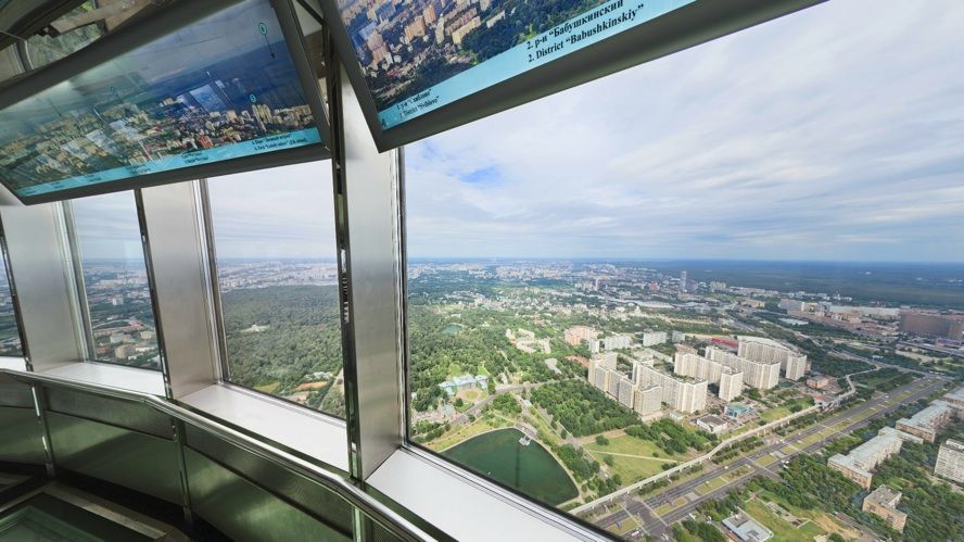 بنُى بمناسبة الإحتفال بالذكرى ٥٠ للثورة الروسية ولإظهار تفوق السوفييت على الغرب إبّان المنافسة القوية بين الاتحاد السوفياتي والولايات المتحدة في مجال غزو الفضاء ، مهندس البرج نيقولاى نيكيتن استوحى فكرته من زهرة الزنبق،وارتفاعه يصل الى نصف كيلو متر فوق الارض، وهو أعلى برج للبث التليفزيونى والاذاعى فى العالم حتى يومنا هذا و إفتتح عام ١٩٦٧، عليه أجهزة البث الإذاعى والتليفزيونى والاتصالات وأجهزة خدمة الأمن ومجمع الأرصاد الجوية على قمة البرج، ومزود ب ٥ مصاعد رئيسية تتمكن من الوصول إلى أعلى نقطة فى البرج خلال ٥٨ ثانية، مُدرج على قائمة الاتحاد العالمي للأبراج الكبيرة ،وتعتبر زيارة البرج والاستمتاع بمشاهدة مدينة موسكو من فوق البرج من أمتع الرحلات وأشهرها