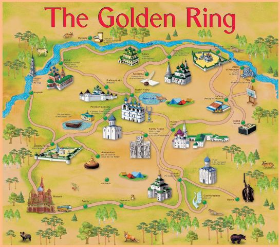 قلاع وأبراج من العصور الوسطى ، تمايل أغصان الأشجار بدلال، رائحة البخور و الشموع تنبعث من الكنائس، طيور تغرد ، سماء زرقاء مع سحاب أبيض متقطع ، وخرير ماء يعزف أجمل الألحان ، كل هذا تشعربه وتشاهده وتستمتع به فى آن واحد! عندما تقوم بجولة سياحية فى مدن الطوق الذهبى لروسيا أو الخاتم الذهبى أو ما يطلق عليه «جولدن رينج»، ويمكن القيام بهذه الجولة صيفاً و شتاءاً بأكثر من طريقة بالسيارة او من خلال جوله نهرية في نهر الفولجا حيث تنتشرعلى ضفافه مدن « جولدن رينج » إذن فما هو الطوق الذهبى لروسيا « جولدن رينج » ؟ هو طريق سياحى يصل طوله إلى 1000 كيلو متر تقريباً يربط مجموعة من المدن الروسية المحيطة بالعاصمة الروسية موسكو فى اتجاه الشمال الشرقي ، وقد ظهر مصطلح «الطوق الذهبي أو الخاتم الذهبى » لأن الطريق يأخذ شكل دائرة أو شكل خاتم ،لعبت كل مدينة عليه دوراً مهما ً في ظهور وتأسيس الدولة الروسية الموحدة فى القرن ال 15، وكانت شاهداً على محطات حاسمة من تاريخ روسيا ،وتتميز مدن الطوق الذهبي بجمالها وتاريخها الخالد حيث تُعد مقصد سياحي ومركز ثقافي تشتهر بكنائسها ذات الطراز القديم والتي مازالت محتفظة بجمالها حتى الآن ، وكذلك تشتهر بالمتاحف الرائعة ، والمحميات الطبيعية والتى يتعرف زائريها على كل مراحل تطور العمارة الروسية القديمة فى خلال فترة ما بين القرن الثاني عشر والثالث عشر، وطريقة بناء البيوت السكنية خلال قرني السادس عشروالسابع عشر.