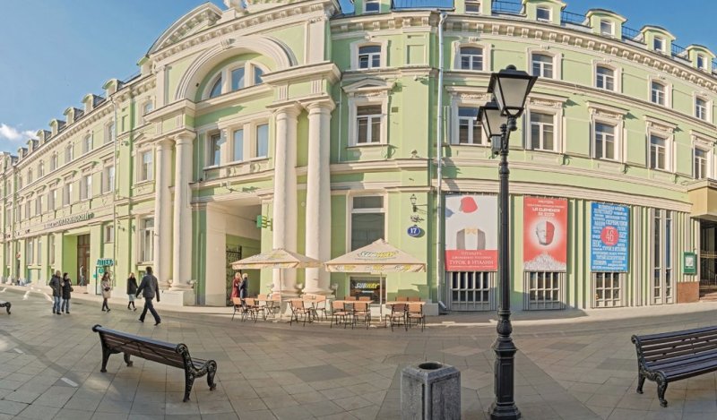 تم تشييد المبنى العصري لـ “سلافيانسكي بازار” في 17 شارع نيكولسكايا ، الذي يضم فندق ومطعم الذي يحمل نفس الاسم في عام 1872 بأمر من ممثلي عائلة شيريميتييف وقد كان اول فندق ومطعم فى موسكو يعتمد الخدمة الأوروبية ،وكان فقط الأغنياء والمشاهير يمكنهم تحمل تكلفة الإقامة و الإفطار، وكانت هناك غرفًا باهظة الثمن يقيم فيها الوزراء الروس وأصحاب مناجم الذهب وملاك الأراضي الأثرياء ، وفى العصر السوفيتى ، تم افتتاح مسرح الدراما للأطفال بقيادة ناتاليا ساتس في عام 1966 ، لكنه أغلق بالفعل في عام 1993 بعد حريق المبنى وتم إعادة إفتتاحه وحالياً به مسرح للموسيقى بإسم بوكروفسكي