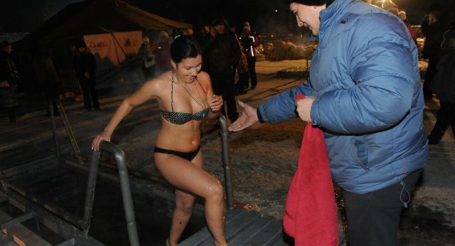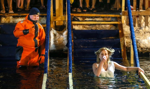 صور لبعض المواطنين يمارسون طقوس عيد الغطاس فى روسيا