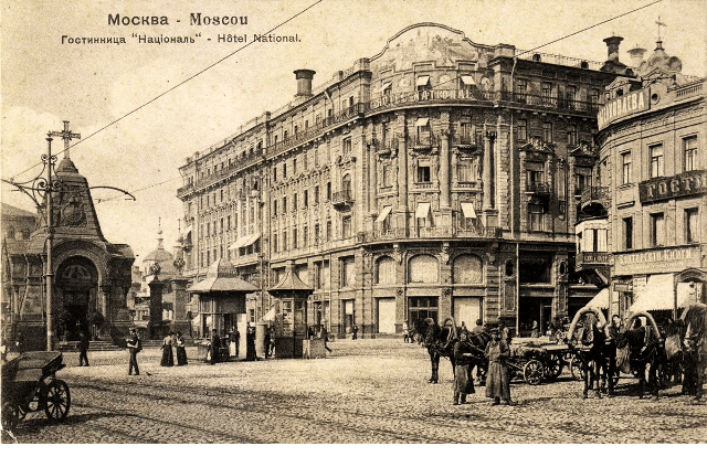 عام 1901 بدأ بناء فندق ناشيونال ( الإسم الأصلي للفندق هو وطني )، مهندس المشروع المعماري الكسندر إيفانوف، لم يتم تشييد المبنى من الصفر، ولكن من خلال إعادة بناء مبنى سكني كان قائماً بالفعل،وفتح الفندق أبوابه للضيوف في 1 يناير 1903، كان الهدف من بناء الفندق هو استقبال وخدمة ضيوف أجانب رفيعي المستوى وممثلي الإمبراطورية الروسية والنخبة العسكرية، وأفراد عائلات ملكية من أوروبا، والتجار الأثرياء والصناعيون الكبار، ومابين أعوام 1903-1910 صدرت سلسلة من البطاقات البريدية عليها صورة فندق ناشونال ،وفيه عاش الدوق الأكبر ألكسندر ميخائيلوفيتش، حفيد الإمبراطور نيكولاس الأول، وعم آخر إمبراطور روسي، نيكولاس الثاني عام 1913، و أيضاً حل ضيفاً فى فندق ناشيونال زعيم الثورة البلشفية عام 1918 “لينين” .