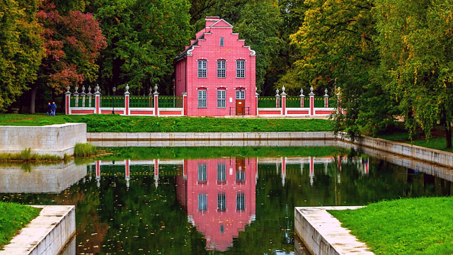 أقدم المباني في العزبة، شيد هذا المبنى كذكرى لعهد الامبراطور بطرس الاكبر وولعه بهولندا ، وهو ظاهرة في تنظيم الحدائق في روسيا خلال القرن ال 18، ويعتبر هذا المبنى الاول من نوعه في روسيا ،ان هذه التحفة المعمارية هي اول من كان يستقبل الضيوف القادمين الى العزبة عبر الجسر المتحرك، يطل المبنى على مسطح مائي، للمبنى واجهة جميلة ونوافذ شبيهة بالتي كانت تستخدم في هولندا انذاك، ان كل شيئ داخل المبنى والمنطقة المحيطة به يذكر بهولندا ،يعد البيت الهولندي واحدًا من أكثر المباني المصغرة والأكثر روعة في نفس الوقت ، غرف المبنى ببلاط روتردام ، ومجموعة من أدوات المائدة والتماثيل والبورسلين العتيق ، وكانت مكانًا مثاليًا لحفلات الشاي والمحادثات الطويلة للنساء، حتى لو كنت من محبي العقارات الروسية ذوي الخبرة ، فسترى مثل هذا “التصميم الداخلي الأوروبي” لأول مرة.