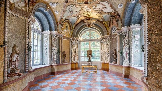 احد اجمل المباني في العزبة استمر تشييده من عام 1755 حتى عام 1761 ،المبنى على طراز باروكو مبني عل قاعدة مزخرفة ثلاثية الدرجات وتعلو نوافذه اقنعة لاسود، جدران المبنى من الزجاج الملون وحجر الطوف الكلسي ،مثبت عليها قواقع بحرية ونهرية مختلفة الاحجام والالوان والاشكال، والمبنى من الداخل يشبه كهف تحت الماء مغارة مبنية من الحجر للاسترخاء في أيام الصيف الحارة إستمر عمل ديكورها الداخلي حوالي عشرين عامًا، إنه مزين من الداخل بأصداف البحر ، والأصداف التي تم إحضارها من البحار والمحيطات البعيدة والأنهار القريبة.