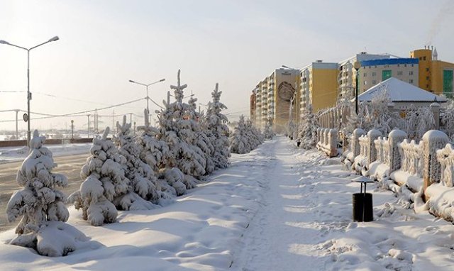 على الرغم من حقيقة أن الماء والدهانات وحتى البنزين يتجمد بسرعة في مثل هذه الأماكن، إلا ان الناس لا يزالون يعيشون في مدينة فيرخويانسك، التي تعد من اكثر المدن برودة في العالم. درجات الحرارة تصل الى مستويات قياسية للغاية في هذه المدينة، ويمكنها ان تصل الى 60 درجة مئوية تحت الصفر، لكنها في العادة تكون 40 درجة تحت الصفر.