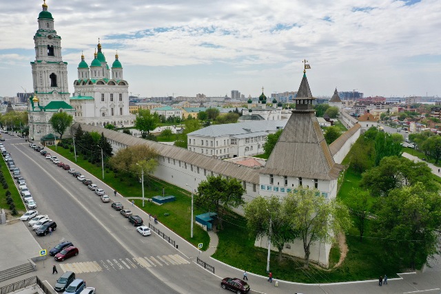 الكرملين فى أستراخان هو قلب المدينة،ويعتبر مثالًا رائعًا على فن وقوة التحصين الروسي في القرن السادس عشر، تأسس في عهد القيصر إيفان الرهيب،وهو من الأماكن السياحية الشهيرة، إنه مجمع معماري كامل، يبلغ طول جدران الكرملين حوالي 1.5 كم، ويصل سمك جداره في بعض الأماكن إلى 12 مترًا، والارتفاع يصل إلى 8 أمتار، و7 أبراج قوية، يوجد العديد من الكاتدرائيات،والبوابات والمباني الإدارية، والعديد من المتاحف المثيرة للاهتمام، الدخول إلى الكرملين مجاني، ولكن هناك العديد من المتاحف التي بها معارض دائمة أو مؤقتة على أراضي الكرملين، والتي ستحتاج إلى شراء تذاكر لها.